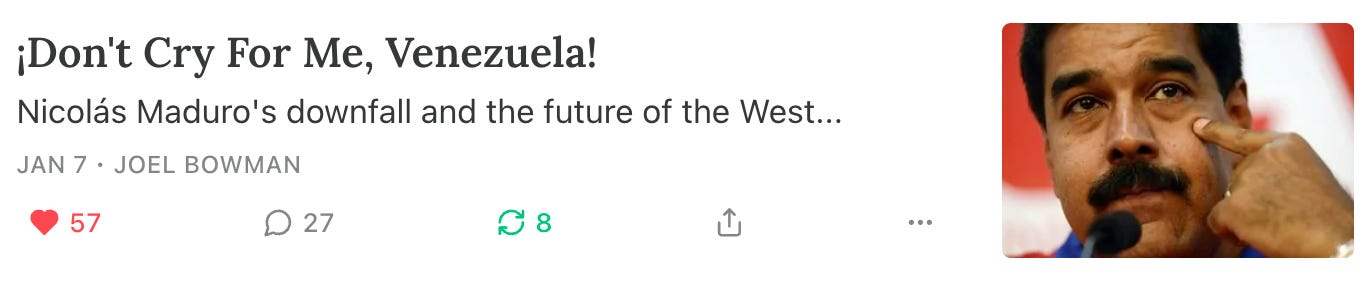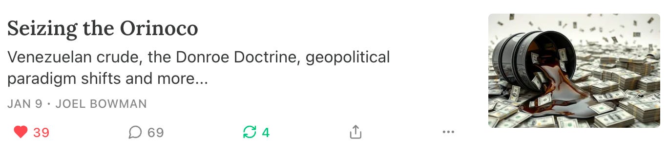 Before we (ahem…) dive into the Notes from this past week – concerning Venezuela, BRICS, global energy supply and much more – a special thanks to our vibrant Notes readership, who are not afraid to wade into the comments section with their own thoughts and opinions. If you’re not already a member, kindly consider joining the conversation today…