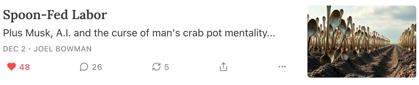 And now, returning to the world of petty human affairs… this week, we examined the nature of “work,” what is means to be a selective Luddite, and where “time’s roaring loom” of technological progress may lead us yet. Please enjoy, below…