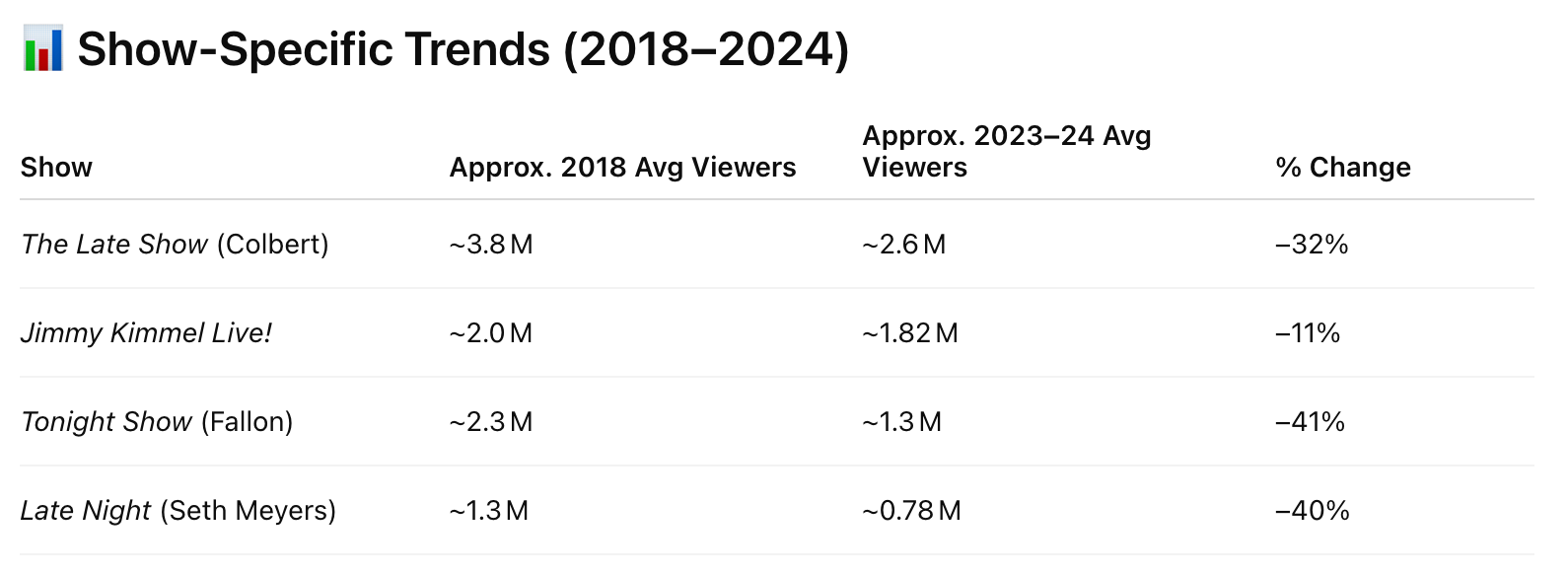 Late-night comedy didn’t just lose its edge—it lost its audience. And that’s no conspiracy. It’s just math.