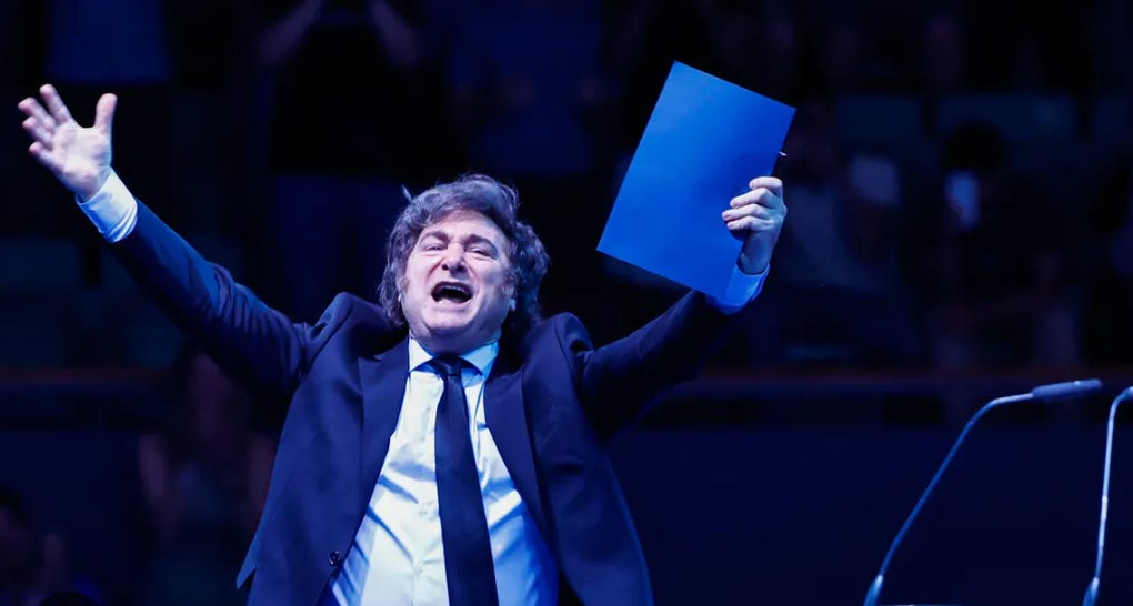 Meanwhile, at the other End of the World, Milei continues delivering a master class in promises kept. Here he was, speaking at the Madrid Economic Forum in Spain last week:
