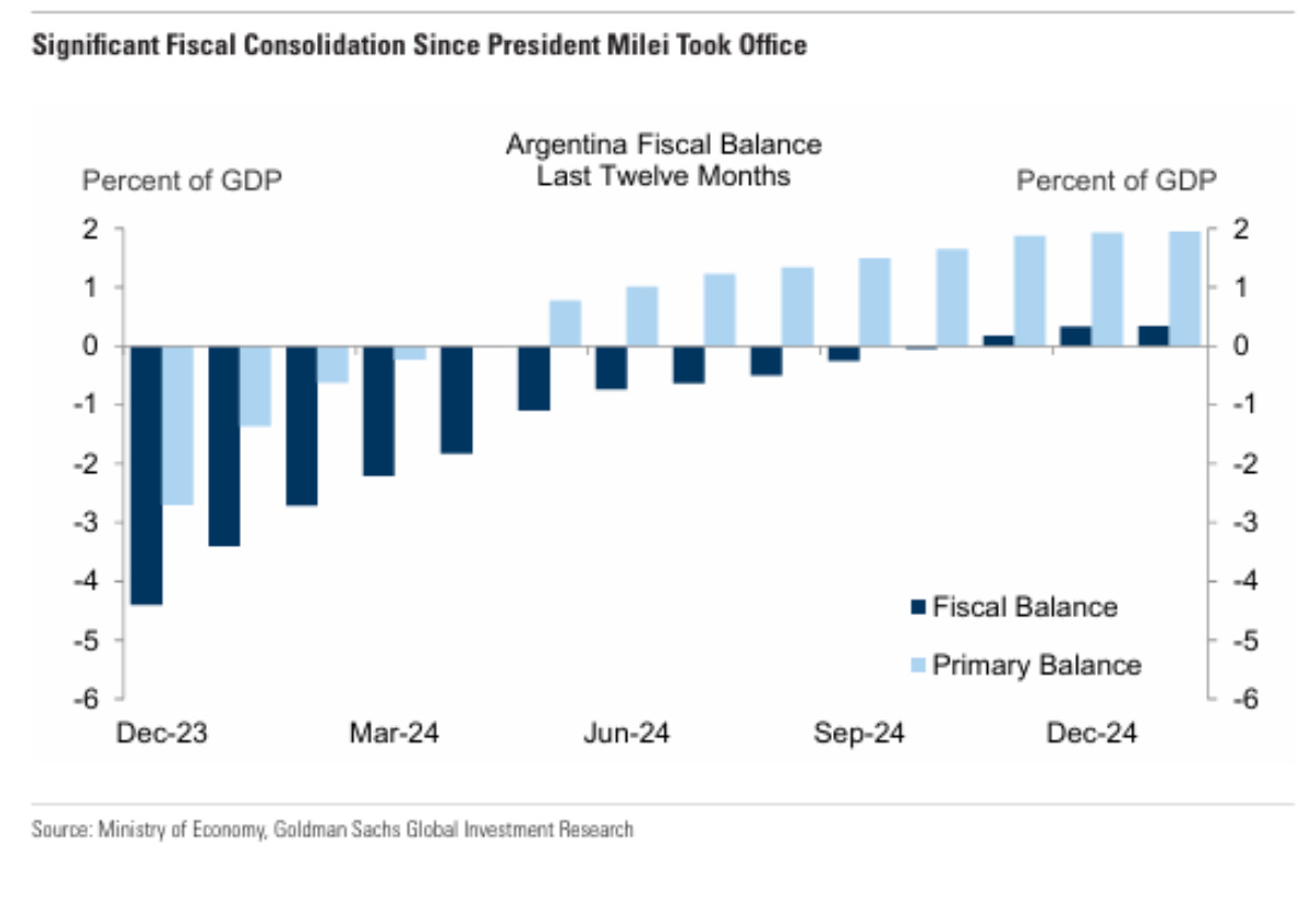 Zooming out, here’s a chart of the progress since President Milei took office in December, 2023:
