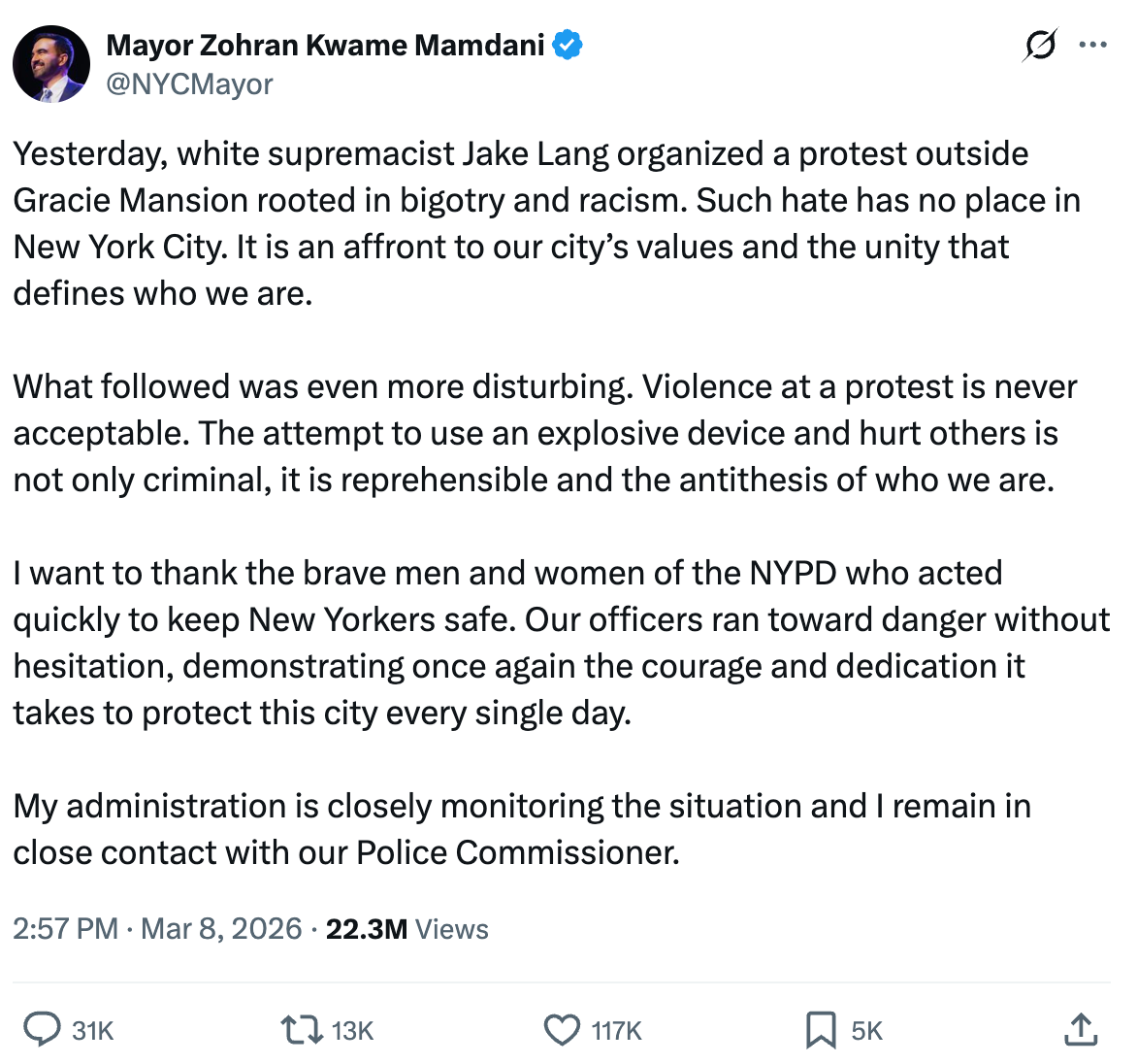 Say what you will about New York City Mayor Zohran Mamdani (really, have your say in the comments, below)... at least he had the nerve to leave his own ridiculous reframing of the event on his X account for all and sundry to see and mock...