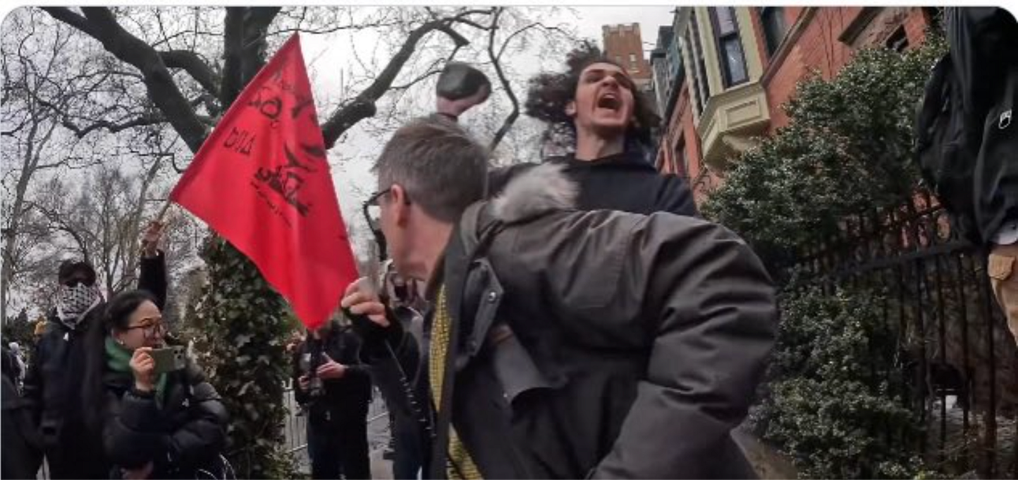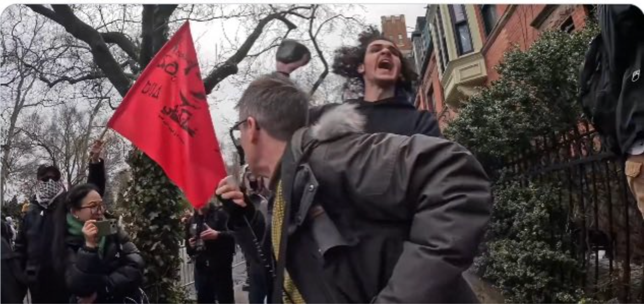 Professional protester and all round useful idiot, Walter Masterson (pictured in front, below), was in the middle of whining “as a born and raised New Yorker, we welcome everyone into this city” when Balat conscripted his services as a human stepladder, yelled “Allahu Akbar!” and then launched a homemade explosive device into the nearby crowd.