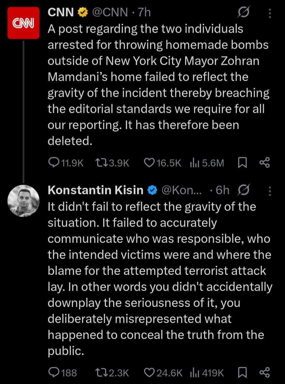 Naturally, gushing agitprop spigot, CNN, was on the case... ready to distort the facts, skew the narrative and run cover for the perps. Their post on X: